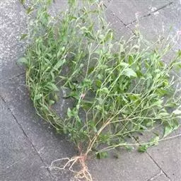 多年生草本,茎常匍匐在地或稍直立,被白紫色柔毛,具径不过1厘米的主根;茎长20-50厘米,不分枝或分枝,被白色或带紫色的曲柔毛与长柔毛,有时在上部有腺毛。基生叶灰绿色,狭倒披针形至椭圆形,长5-12厘米,宽1-2厘米,先端锐尖,基部渐狭或骤狭至叶柄,边缘疏生浅齿至全缘,两面被白色或紫色的曲柔毛与长柔毛;叶柄0-4毫米;茎生叶狭倒卵形至倒披针形,有时椭圆形或卵形,长3-7厘米,宽0.5-1.8厘米,先端锐尖至浑圆,基部渐狭或骤狭至叶柄,边缘疏生浅齿至全缘,稀在下部呈羽裂状,毛被同基生叶的;叶柄长0-3毫米。