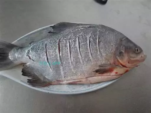 将鱼去鳞、鳃、内脏,洗净,在鱼身上两面划斜十字纹数个。
