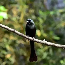 盘尾树鹊,是雀形目鸦科的珍稀鸟类,是一种中等体型的近黑色树鹊。尾甚长而端部展开;通体体羽闪亮深灰色,…