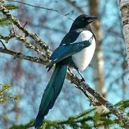 喜鹊:是鸦科、鹊属的一种鸟类。共有11个亚种。体长40-50厘米,雌雄羽色相似,…