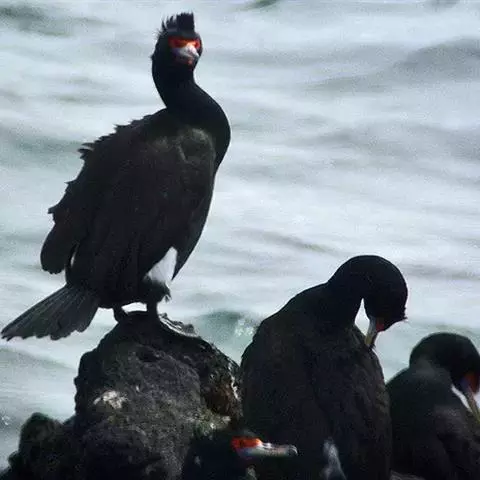海鸬鹚:俗名乌鹈。典型的海上鸬鹚。体长约70厘米,体羽黑色具光泽。脸红色,与红脸鸬鹚甚似,但繁殖期…
