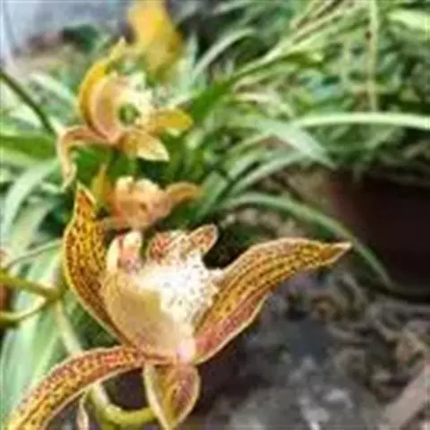 寒兰是兰科兰属的地生草本植物。茎为椭圆形;叶呈带状,尾部修长渐尖,叶脉较明显;每秆花枝开5-12朵,…