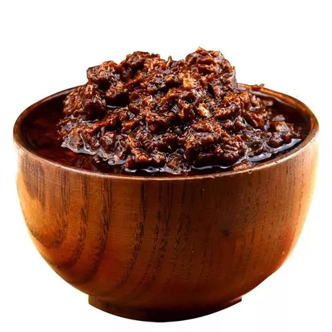 4.调制成豉汁。将豆豉、酱油等调料下锅烹制,最后放入水和淀粉勾芡,就成了风味独特的豉汁酱了。