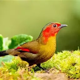 红翅薮鹛是噪眉科、薮鹛属中型鸟类,体长21-24厘米。头顶灰褐色,头侧和颈侧赤红色,上体橄榄褐色,…