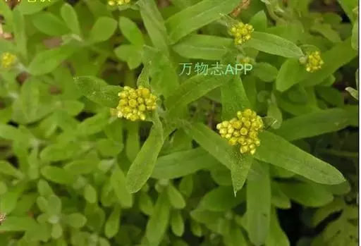 一年生草本。茎直立或基部发出的枝下部斜升,高10-40厘米或更高,基部径约3毫米,上部不分枝,有沟纹,被白色厚棉毛,节间长8-20毫米,上部节间罕有达5厘米。叶无柄,匙状倒披针形或倒卵状匙形互生,长5-7厘米,宽11-14毫米,上部叶长15-20毫米,宽2-5毫米,基部渐狭,稍下延,顶端圆,具刺尖头,两面被白色棉毛,上面常较薄,叶脉1条,在下面不明显。头状花序较多或较少数,径2-3毫米,近无柄,在枝顶密集成伞房花序,花黄色至淡黄色;总苞钟形,径约2-3毫米;总苞片2-3层,金黄色或柠檬黄色,膜质,有光泽,外层倒卵形或匙状倒卵形,背面基部被棉毛,顶端圆,基部渐狭,长约2毫米,内层长匙形,背面通常无毛,顶端钝,长2.5-3毫米;花托中央稍凹入,无毛。雌花多数,花冠细管状,长约2毫米,花冠顶端扩大,3齿裂,裂片无毛。两性花较少,管状,长约3毫米,向上渐扩大,檐部5浅裂,裂片三角状渐尖,无毛。瘦果倒卵形或倒卵状圆柱形,长约0.5毫米,有乳头状突起。冠毛粗糙,污白色,易脱落,长约1.5毫米,基部联合成2束。花期1-4月,8-11月。
