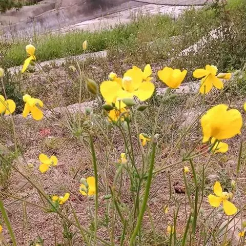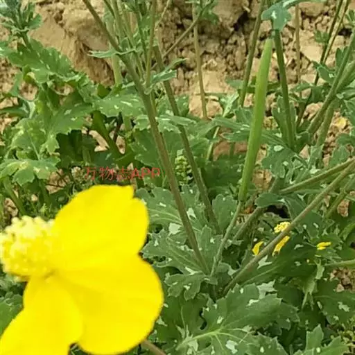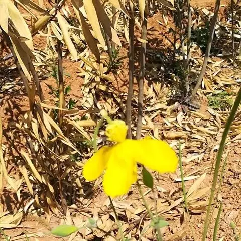 花1-5朵于茎和分枝先端排列成聚伞花序;花梗长2-2.5厘米,无毛;具苞片。花芽宽卵形,长约1厘米;萼片卵形.长0.6-1厘米,先端渐尖成距,距末明显扩大成匙形,无毛或被短柔毛;花瓣倒卵形至回形,长1-1.6厘米,宽1-1.3厘米,黄色;雄蕊多数,花丝丝状,长3-4毫米,花药长圆形,长1.5-2毫米,黄色;子房狭圆柱形,长约6毫米.绿色,密被疣状短毛,花柱短,柱头2裂,直立。蒴果线形,长4-7.5厘米,粗约2毫米,绿色,无毛,2瓣自顶端开裂至近基部。种子卵珠形,长约0.5毫米,红棕色,具网纹。花期3-5月,果期6-7月。