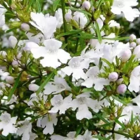 半灌木。茎短,近直立或斜上升,多分枝;不育枝不发达,多从茎顶或侧边长出,通常比花枝短而少,被短柔毛;花枝发达,高可达30厘米,近直立或上升,稀有弯曲,在较大的枝上常有分枝长出,具花部分被开展或向下的长柔毛,不具花部分通常被短柔毛;在叶腋中常长出具有丛生小叶的短枝。叶长圆状椭圆形或线状长圆形,长1-2.8厘米,宽1-6.5毫米,先端锐尖或钝,基部渐狭成短柄,全缘或偶有在边缘上部具1-2对不明显的小齿,扁平或稍背卷,绿色,两面无毛或稀被微柔毛,中脉及2对侧脉在上面不明显,但在下面微突起,纤细,腺点小而在下面明显。轮伞花序沿着花枝的上部排成间断或近连续的穗状花序。两性花、雌花异株,两性花发育正常,雌性花较退化,花冠较短小,下唇裂片较两性花的短,雄蕊不发育;花梗长2-4.5(5)毫米,密被短柔毛。花萼管状钟形,长2.5-3.5(4)毫米,外被开展的疏柔毛,腺点在果期明显,上唇的齿尖三角形或三角形,具缘毛。花冠红紫或紫色,也有白色,两性花的长约5毫米,伸出花萼,下唇开裂,雌性花的与花萼近等长或微伸出花萼,下唇近伸直,外被短柔毛。雄蕊4,在雌花中不发育,极短。小坚果卵圆形,黑褐色,长约1毫米,光滑。花、果期8月。