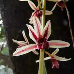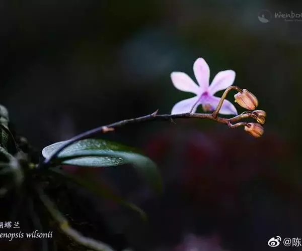 华西蝴蝶兰(拉丁学名:Phalaenopsis wilsonii Rolfe)又名小蝶兰、楚雄蝶兰。兰科,蝴蝶兰属附生草本植物,气生根长而弯曲,茎很短,叶稍肉质,长圆形或近椭圆形,花序柄暗紫色,花苞片膜质,萼片和花瓣白色带淡粉红色的中肋或全体淡粉红色;中萼片长圆状椭圆形,侧萼片与中萼片相似而等大,花瓣匙形或椭圆状倒卵形,蕊柱淡紫色,蒴果狭长,4-7月开花,8-9月结果。