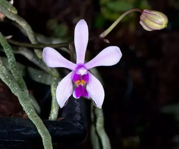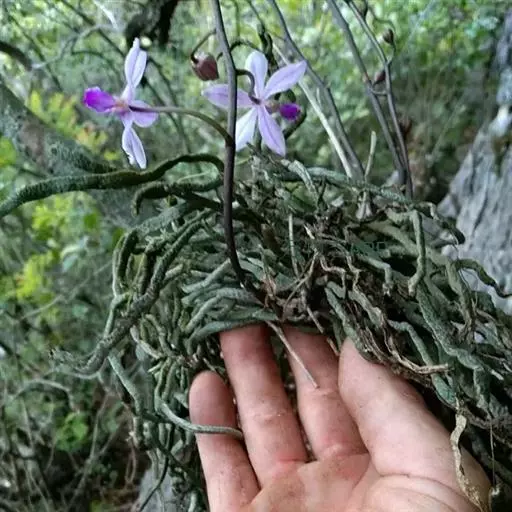 五唇兰:又称五舌兰,叶丛生,肉质状。基部关节明显,无明显茎。花葶抽生于基部,疏生十余朵小花,花为紫…