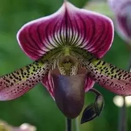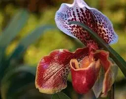 兜兰花比较雅致,色彩比较庄重,色及带有不规则斑点或条纹。花瓣较厚,花朵开放期比较长。属观赏类花草。