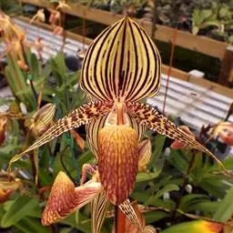 虎斑兜兰兰科,兜兰属地生或半附生植物。叶基生;数枚至多枚,叶片带形、革质。花葶从叶丛中长出,花苞片…
