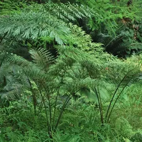 棕涧状常绿植物,高1-2.5米,茎干通常单一,覆被着宿存的叶柄基部。叶螺旋状排列,簇生于茎干的顶部,羽状全裂,长70-120厘米,叶柄上部两侧有平展的短刺;羽片70-105对,线形,直或微曲,厚革质,长12-23厘米,宽6-7毫米,上面中脉隆起,下面,无毛,先端渐尖,基部楔形、偏斜,边缘平或微反卷。