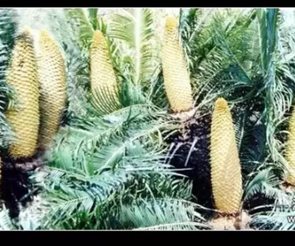 攀枝花苏铁在自然状况下以根孽和种子繁殖并存,根孽繁殖多于种子繁殖。