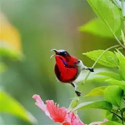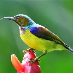 雀形目、太阳鸟科、太阳鸟属鸟类的通称。体型纤细,嘴细长而下弯,…