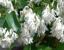 常绿灌木或小乔木,高5-20米,树干直径可达5米;小枝褐色或灰色,节间部分干时有纵条纹,具皮孔;芽鳞片纸质,边缘干膜质,三角形或矩圆状椭圆形,先端尾尖或圆钝。叶的形状多变化,由宽卵形、菱状卵形、菱状倒卵形、椭圆形至倒披针形,长5-12厘米,宽2.5-7厘米,先端尾尖且钝头,基部圆形,边缘微反卷,上半部有钝锯齿,下半部全缘,上面光亮,中脉在下面显著凸出,侧脉5-7对;叶柄粗,长2-7厘米。多歧聚伞花序长3-13厘米,有10-20花;花梗长1.5-3.5厘米;苞片条形,长1-2.5厘米;小苞片三角状矩圆形或条形,长0.5-1.5毫米;花直径约1厘米;雄蕊花丝长2.5-3毫米,花药长1-2毫米,药隔伸出成1短尖头;心皮约10个。蓇葖轮直径7-10毫米,约具10个蓇葖果;种子条状椭圆形,长1-3.5毫米,黑色。花期5-6月,果期10-11月。