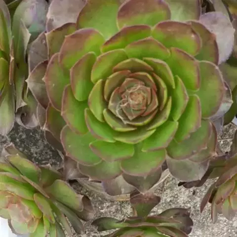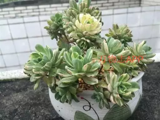 爱染锦(Aichryson × domesticum),别名黄笠姬锦、墨染,景天科莲花掌属多肉植物,原产地位于大西洋诸岛、北非和地中海沿岸,叶美,可观赏,亦可净化空气。