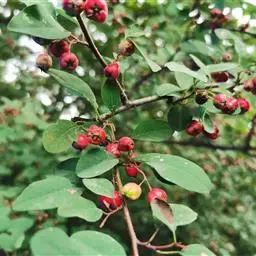 水栒子是蔷薇科栒子属的落叶灌木。高达4米,幼时带紫色,叶卵形或宽卵形,先端尖或钝圆,…