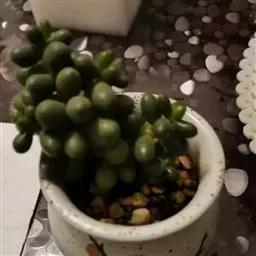 玉米石是景天科、景天属植物。多年生草本多浆植物。植株低矮丛生,多分枝。叶膨大成圆筒形、卵形或近小球形,…