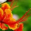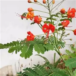 洋金凤 Sw.),豆科小凤花属灌木状或小乔木植物,枝无毛,绿或粉绿色;二回羽状复叶;总状花序伞房状,…