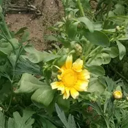 菊科,一年生或二年生草本植物,叶互生,长形羽状分裂,花黄色或白色,与野菊花很像。瘦果棱,高二三尺,茎叶嫩时可食,亦可入药。