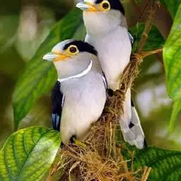 银胸丝冠鸟是雀形目阔嘴鸟科的鸟类,在全世界共分化为10个亚种。体长16-18厘米。嘴宽阔、天蓝色,…