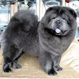 近拍 颈——肌肉发达、匀称,在吻下面没有过多的皮肤皱褶,在公犬因为颈毛多而显得颈短。背线——从肩部到臀部水平、强壮。身体——肌肉发达,方形。胸——深,胸部抵达肘处,胸深与肩隆到地面距离之比是4 : 9。肋——弯曲良好。褶起——略微停住。腰——短。尾——尾的着位点略低于水平背线,形成单一卷曲,向上超过腰部尾尖指向大腿,有饰毛,从它的基部开始卷曲,相对任何一条后腿压平,尾尖均能仰展到大腿中部。将尾弄直,其尾尖能抵达跗关节处,尾着位点低或高,尾巴过于卷曲或短尾都视为不合格。
