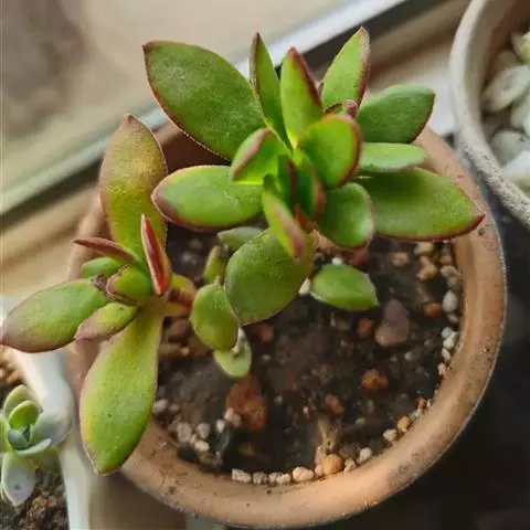三色花月锦是景天科青锁龙属多肉植物,燕子掌的栽培品种,叶片有红、黄、白斑块,色彩斑斓。花期秋季。
