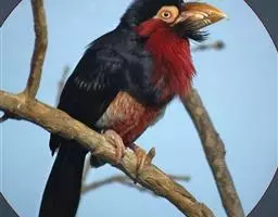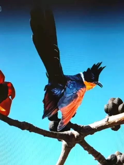 红翅凤头鹃:体长约38厘米,顶冠及凤头黑色,具显眼的直立凤头,背及尾黑色而带蓝色光泽,翅栗红色,…