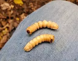 斗米虫为锈色粒肩天牛的幼虫,锈色粒肩天牛主要危害槐树Sophora japonica,…