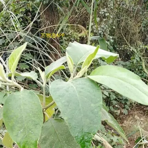 小乔木,高1.5-10米,小枝密被白色具柄头状簇绒毛。叶大而厚,卵状长圆形,长10-29厘米,宽4-12厘米,先端短渐尖,基部阔楔形或钝,上面绿色,被具短柄的3-6不等长分枝的簇绒毛,下面灰绿色,毛被较上面厚,被具柄的10-20不等长分枝的簇绒毛,全缘或略作波状,侧脉每边7-9条,叶柄粗壮,长约1.5 -5.5厘米,密被与叶下面相似的毛被。
