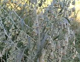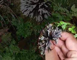 2、醋艾炭:取净艾叶,置锅内,用武火加热,炒至表面焦黑色,喷醋,炒干,取出凉透。每100kg艾叶,用醋15kg。成品为焦黑色不规则的碎片,可见细条状叶柄,具醋香气。