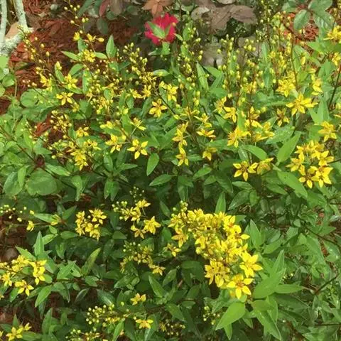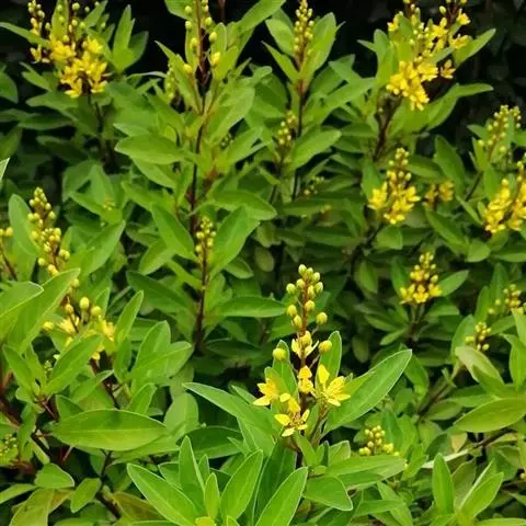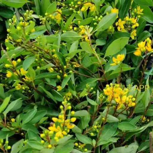 金英常绿灌木,株高约50-160厘米,嫩茎红色。叶片绿色,对生,椭圆形,先端尖,基部楔形,全缘。…