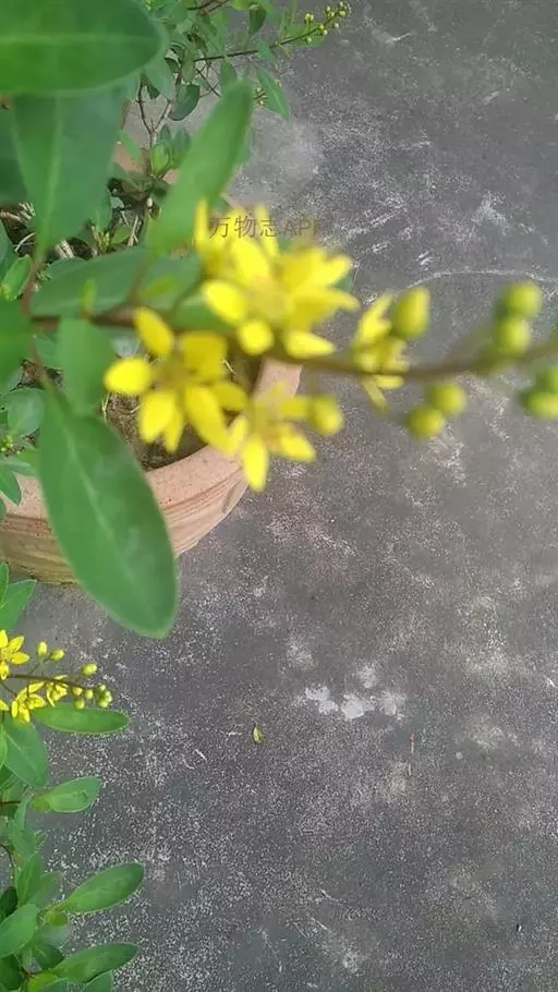 常绿灌木,株高约50-160厘米,嫩茎红色。叶片绿色,对生,椭圆形,先端尖,基部楔形,全缘。花顶生,总状花序,花冠黄色。
