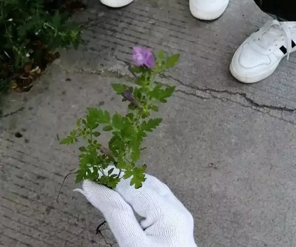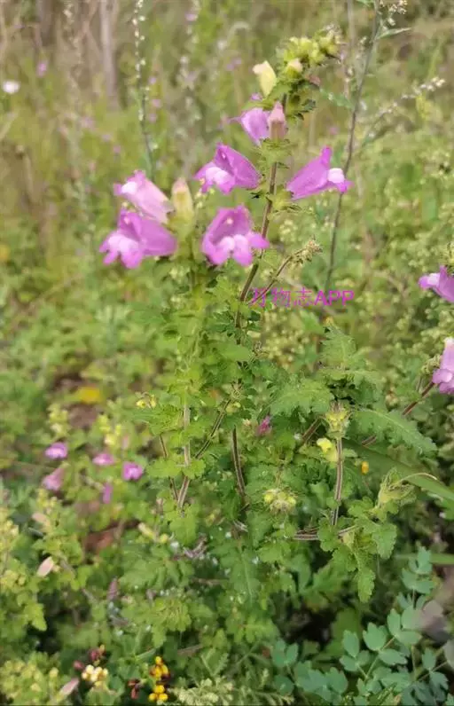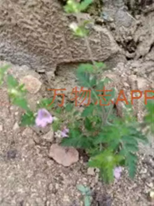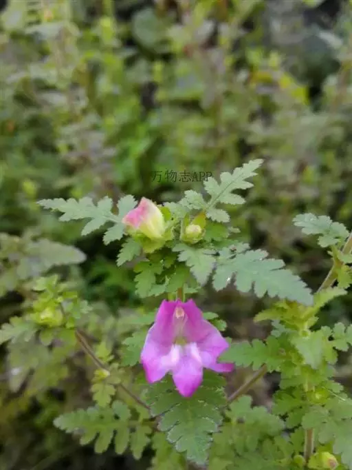 一年生草本,高可达100cm。全株被腺毛,有粘性。茎直立,或弯曲而后上升,多分枝。叶对生;具有带狭翅的柄,柄长5-12mm;叶片长三角状卵形,长1-7cm。下端羽状全裂,向上渐变深裂至浅裂,裂片长卵形,边缘具细齿。花单生于叶腋,花稀疏;花梗长2-7mm;萼钟状,5裂,果期增大,裂片长卵形,上端羽状齿裂,边缘有细齿;花冠紫红色或淡紫红色,筒状,长1.5-2cm,2唇形,下唇有两条横的大皱褶,上有白色长柔毛;雄蕊4,药室基部延长成短芒。蒴果卵状圆锥形,长约1cm,室背2裂。种子卵圆形,扁平,长约1.2mm。花期7-8月,果期8-10月。