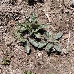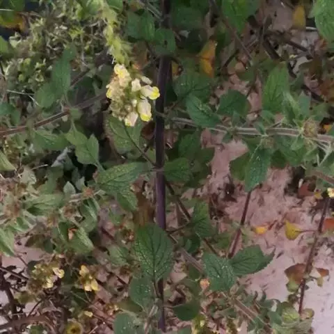 全长30-60cm,茎直立,上部多分枝,具腺毛,有粘性。叶对生,多皱缩而破碎;完整叶片三角卵形,长3-5cm,宽2-3.5cm,羽状深裂,两侧裂片长圆形,顶端裂片较大,卵圆形,边缘具细锯齿,叶两面均有腺毛。穗状花序顶生,花萼钟状,长约6mm,5裂;花冠淡红紫色。味微辛。