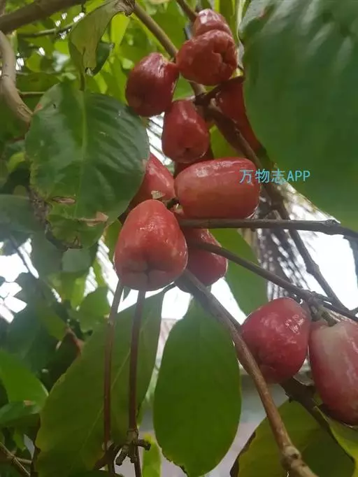 假果是由花托形成的肉质果,又称“梨果”,是由花托形成的肉质果,有陀螺形、扁菱形和卵圆形,有鲜红色、橙色和黄绿杂色。果肉脆嫩多汁,含水分87.8%,碳水化合物11.6%,蛋白质0.2%,脂肪0.1%,还含有多种维生素和钙、磷、铁等矿物元素,具有有利水、除湿、消肿之功,可防治肠胃病、慢性痢疾等。