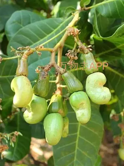 腰果,Anacardium occidentalie Linn,是双子叶植物纲、无患子目、漆树科、腰果属的一种植物。又名槚如树、鸡腰果、介寿果。常绿乔木,树干直立,高达10米。腰果是一种肾形坚果,无患子目漆树科腰果属。原产于美洲。