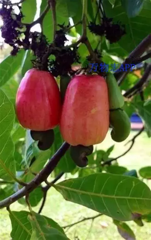 核果肾形,两侧压扁,长2-2.5厘米,宽约1.5厘米,果基部为肉质梨形或陀螺形的假果所托,假果长3-7厘米,最宽处4-5厘米,成熟时紫红色;种子肾形,长1.5-2厘米,宽约1厘米。