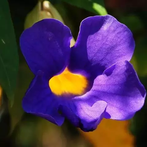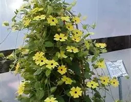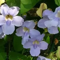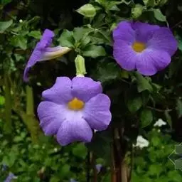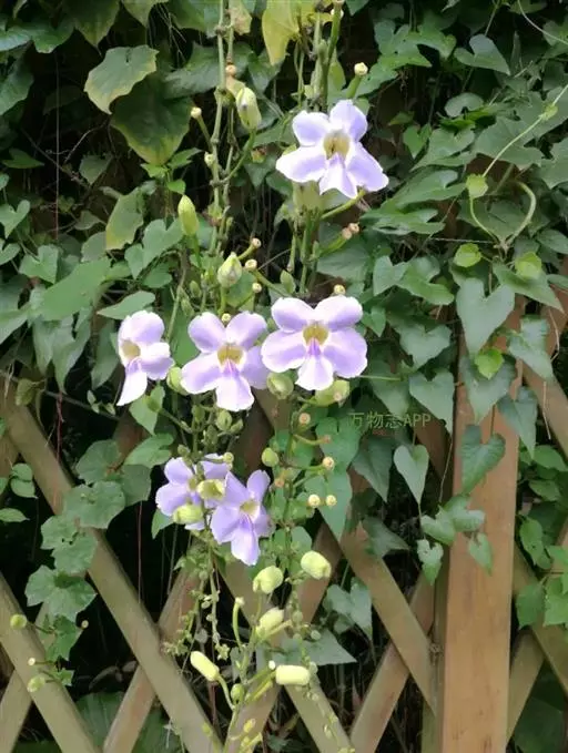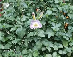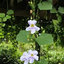 管理:山牵牛喜湿润的土壤环境,忌渍水,生长旺盛阶段应保证水分的供应。其对肥料的需求量较多,除在定植时施用基肥外,生长旺盛阶段可以每隔2-3周追肥一次。休眠期间无需追肥。由于山牵牛的植株高大,因此先用嵌有钢筋的水泥柱搭好支架,必须要保证其坚固耐用,以免出现伤人事件。待植株上架时,应该及时用细绳将新梢固定。并根据其生长状态进行牵引,以保证枝蔓能够爬满整个棚架。在冬末春初要进行轻剪。每年应该进行修剪。该种寿命较长,如有树势衰退、不爱开花等现象发生时,可以考虑进行更新。注意不要连作,最好换地种植。在良好的管理条件下,山牵牛不易患病,亦较少受到有害动物的侵袭。