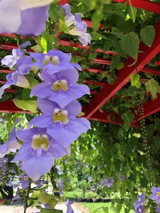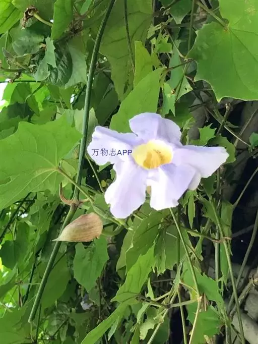 山牵牛为多年生植物,其最佳观赏时段自成形后可达20年以上。山牵牛为棚架、倚树攀生犁型植物。适合庭院、棚架栽培。当其成形后,叶密荫浓,能够给夏天供一片纳凉之地。
