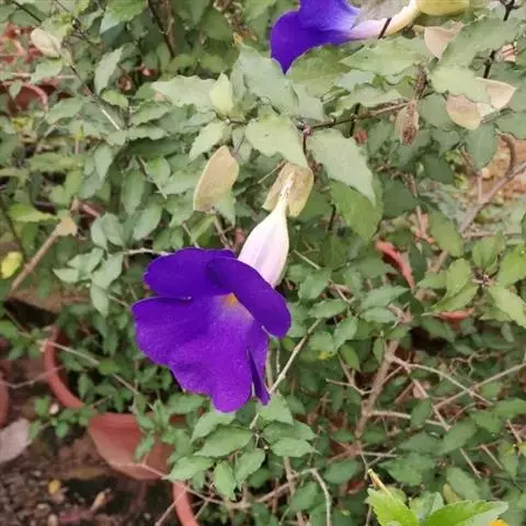 爵床科山牵牛属多年生常绿灌木,植株高2-3米,分枝多,枝条较柔软,幼茎四棱形,绿色至深褐色。蓝吊钟…