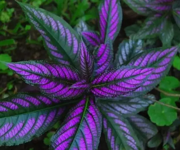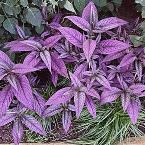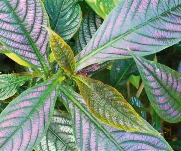 红背耳叶马蓝也称为红背马蓝。叶多卵形,花丝光滑无毛。
