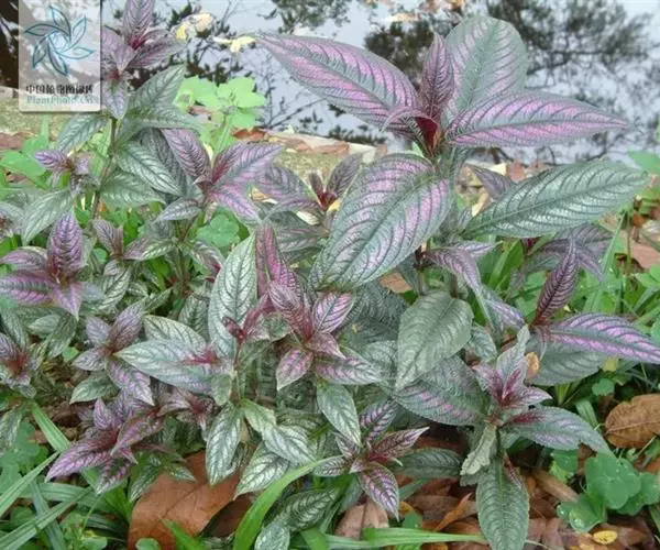 Perilepta dyeriana (Mast.) Bremek. in Verh. Ned. Akad. Wetensch. Afd. Naturk. Sect. 2. 41(1): 194. 1944. ——Strobilanthes dyeriana Mast. in Gard. Chron. 1: 442. 1893 et in Rev. Hort. 65: 201. 1893; J. D. Hook. in Curtis's Bot. Mag. 54: tab. 7574. 1898: 中国高等植物图鉴4: 159. 1975.