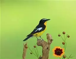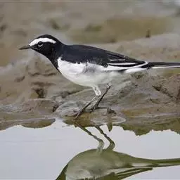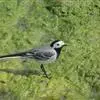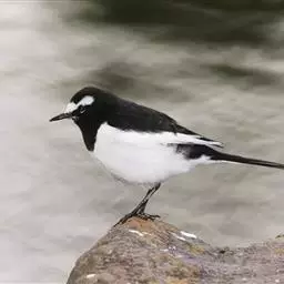 日本鹡鸰:体长约20厘米。上体多黑色,额、颏及眉纹白,下体白,两翼黑而具白色横斑及羽缘,…