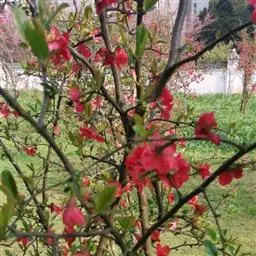 撒金碧桃 Voss)是李亚科,桃属植物桃的变种,叶为窄椭圆形至披针形,长15厘米,宽4厘米,先端成…