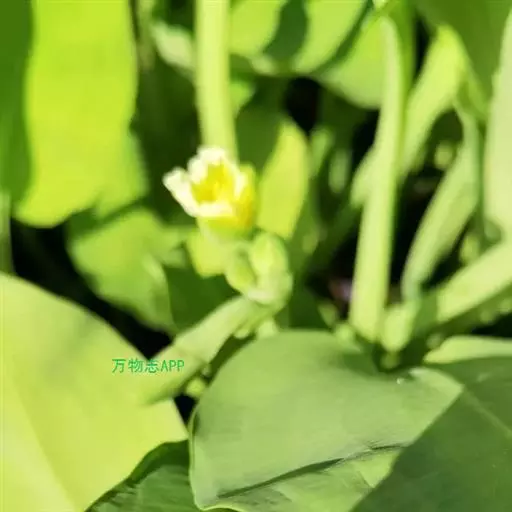 水生草本。叶丛生,挺出水面;叶片卵形至近圆形,长6-28厘米,宽4.5-20厘米,亮绿色,先 黄花蔺 端圆形或微凹,基部钝圆或浅心形,背面近顶部具1个排水器;叶脉9-13条,横脉极多数,平行,几与中肋垂直,网脉细密,不明显;叶柄粗壮,三棱形,长20-65厘米。