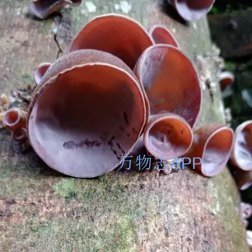 实体丛生,常覆瓦状叠生。耳状。叶状或近林状,边缘波状,薄,宽2-6cm,最大者可达12cm,厚2mm左右,以侧生的短柄或狭细的基部固着于基质上。初期为柔软的胶质,粘而富弹性,以后稍带软骨质,干后强烈收缩,变为黑色硬而脆的角质至近革质。背面外面呈弧形,紫褐色至暗青灰色,疏生短绒毛。绒毛基部褐色,向