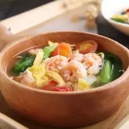 3.锅上火放入骨头汤2500克烧开,将海参等物料放入调好口味,用水淀粉勾芡,鸡蛋打散,放入汤中即成三鲜汤卤。