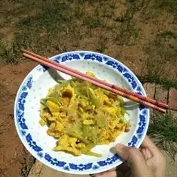有一次,陈老汉把猪肉挑出瘦的,切成很薄的片,下锅炒并放豆酱炒好,没有面饼还有点豆腐皮,切成方块,照猫画虎就做好了“烤鸭”,孙子用豆腐皮卷着大葱和“烤鸭”吃的那香就别提有多么高兴了,爷俩度过了一个幸福的春节。