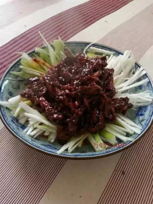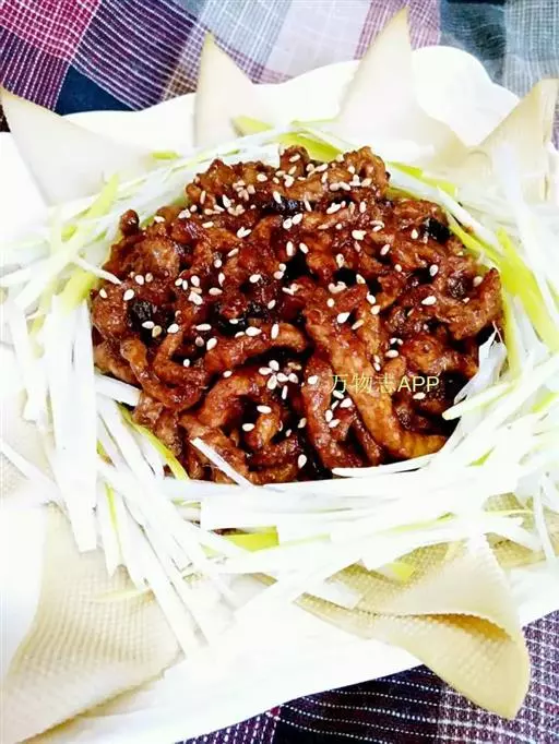 京酱肉丝 1.应选用葱的葱白部分,因为葱丝是直接食用的,所以菜刀和砧板要用开水烫过、消毒过才能切葱丝。